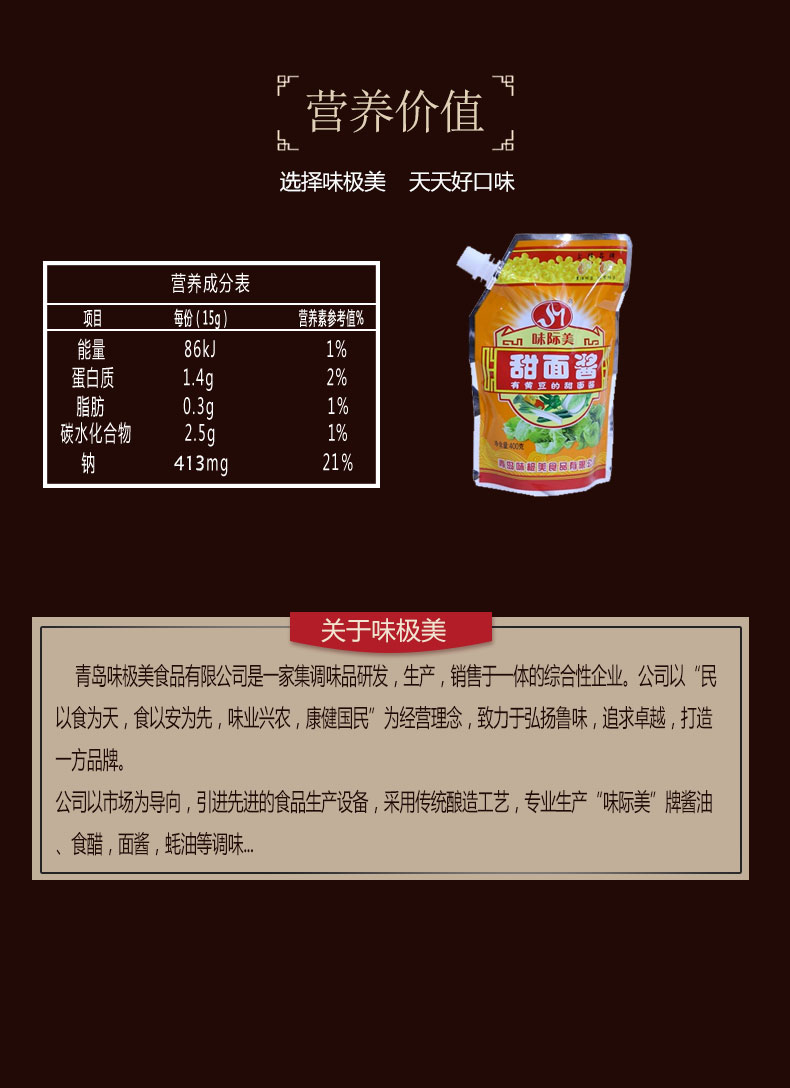 簡(jiǎn)介:味極美甜面醬